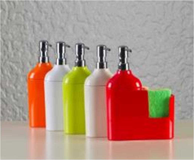 Кухонный дозатор пластиковый для моющих жидкостей с отделением для губки и губкой (цвета в ассортименте)" красный 767,1